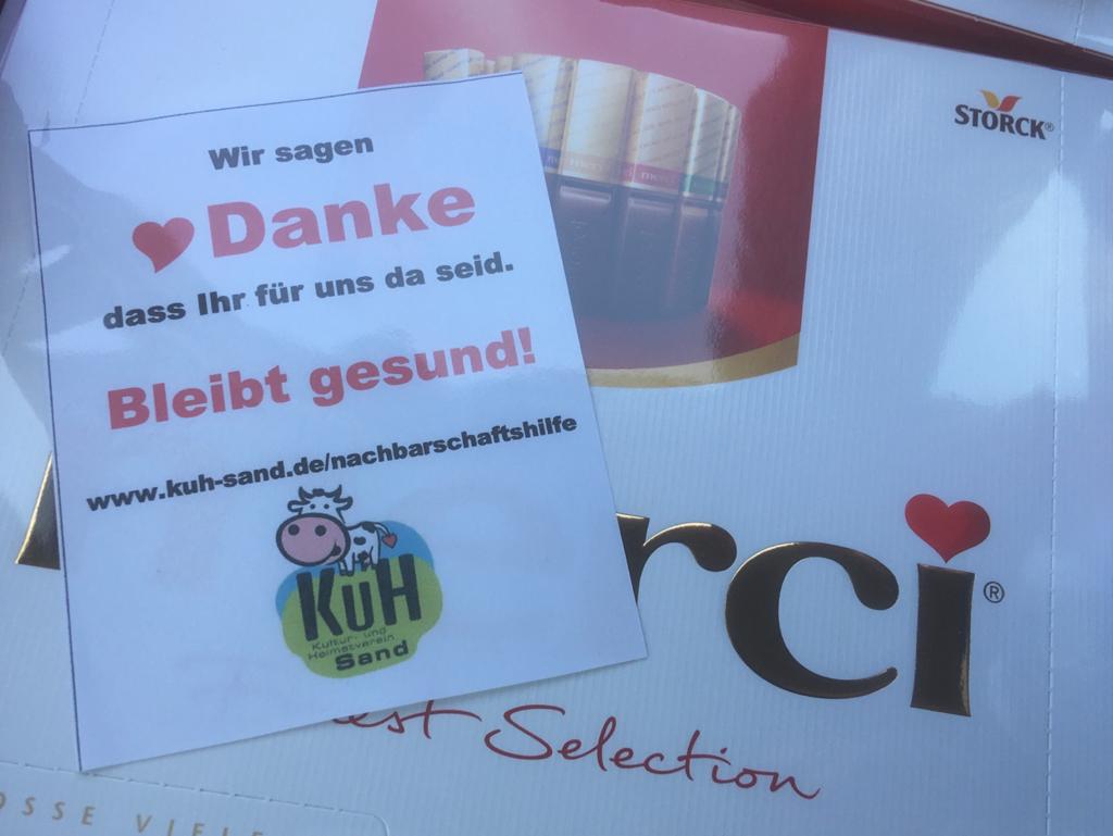 Der KuH hatte in den vergangenen Monaten im Rahmen seiner Aktion "Nachbarschaftshilfe" in Sand unter anderem einen Einkaufsservice für Risikogruppen gestartet, eine Unterstützungsaktion für die örtliche Gastronomie durchgeführt, Formulare für die Kontakterfassung zur Verfügung gestellt und zusammen mit anderen lokalen Organisationen eine Spendenaktion für die Tafel organisiert.